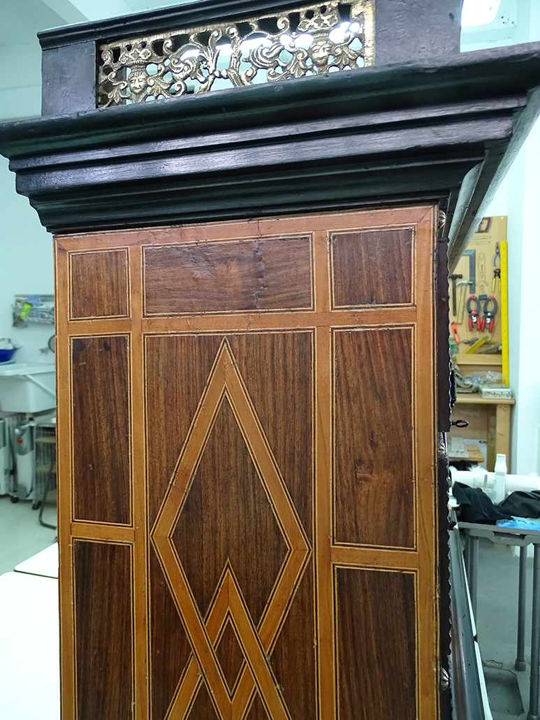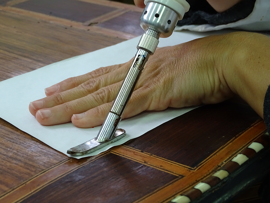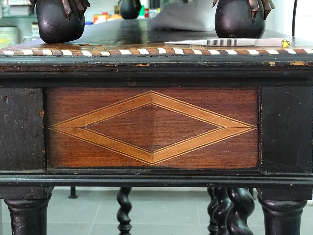 - Revisión minuciosa y encolado, utilizando colas naturales similares a las que se utilizaban en la época de ejecución del mueble.