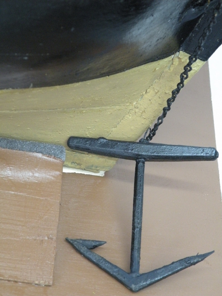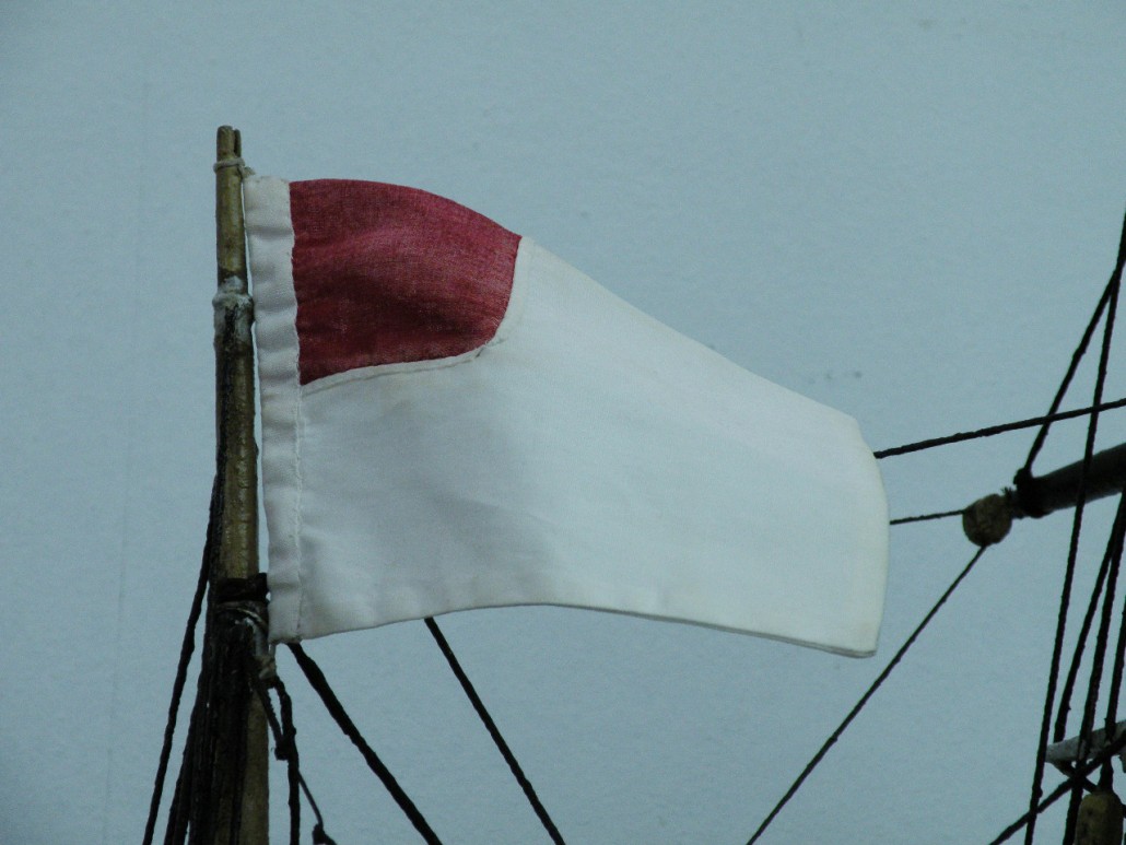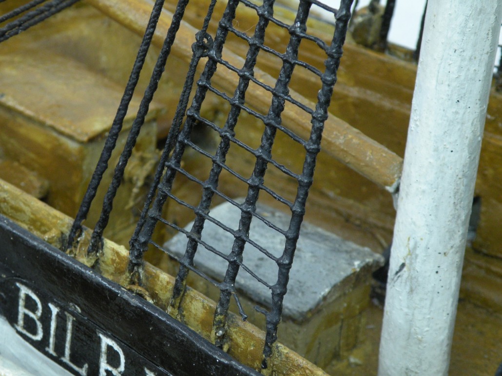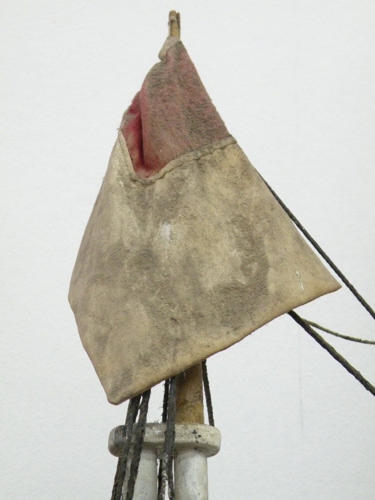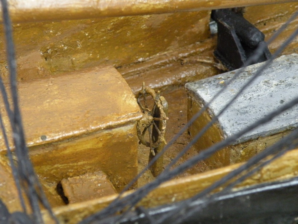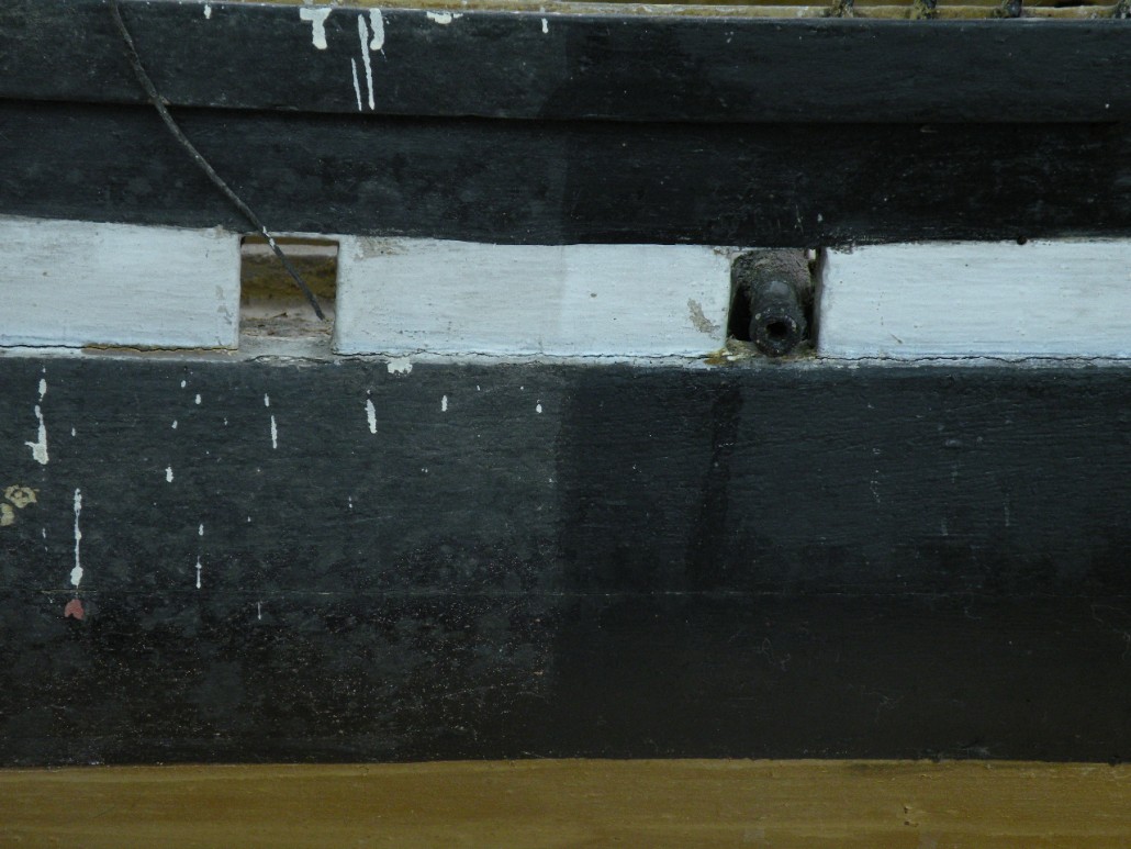 Se encuentra cubierta por un grueso estrato de suciedad superficial acumulada, con varias piezas rotas o desencoladas. Los cabos se encuentran en su mayoría sueltos y la pérdida de elasticidad del material ha provocado su rotura. En la cubierta del barco aparecieron numerosas piezas sueltas.