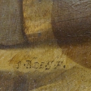Conjunto enmarcado, de gran calidad. Está formado por dos tablas unidas, que representan al donante y a su esposa, en actitud orante. Medidas en centímetros: 50 alto x 66 ancho.