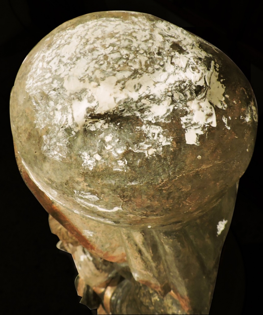 La imagen presentaba numerosos orificios en la cabeza dañando gravemente tanto la policromía como el soporte lígneo.
